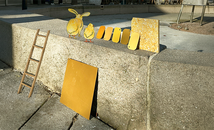 Bilden är från Rinkebytorget där vi och Trafikkontoret, med lite assistans, har testat olika färg- och terrazzoprover för torgets utrustning och övriga detaljer. Fler uppdateringar om Rinkebytorget finns att vänta framöver!